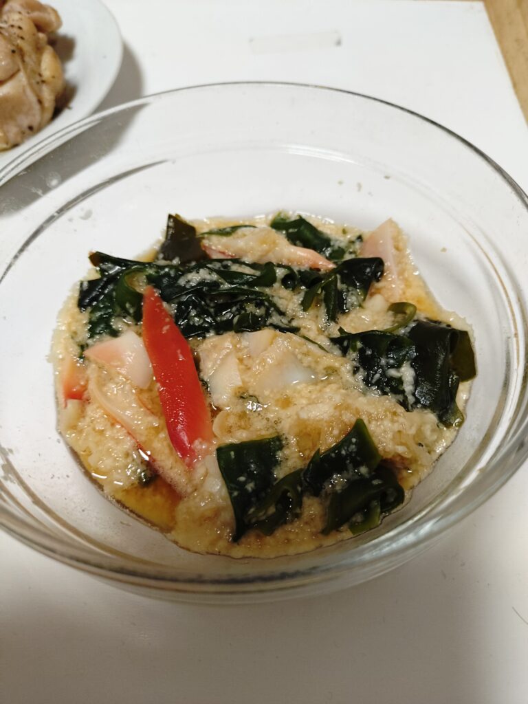 鶏もも焼きをとろろに絡ませて食べたりソデイカをさらに和えてみたり、色々な食し方ができた。