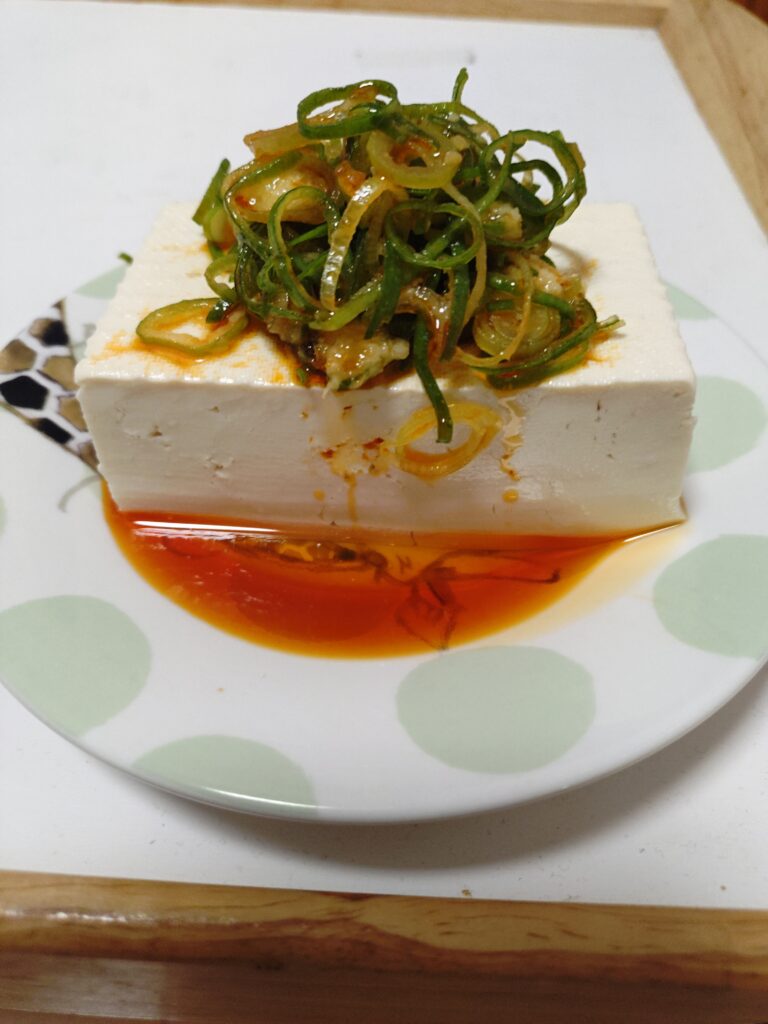 薬味の葱に塩、ラー油、ごま油、醤油をかけてある。