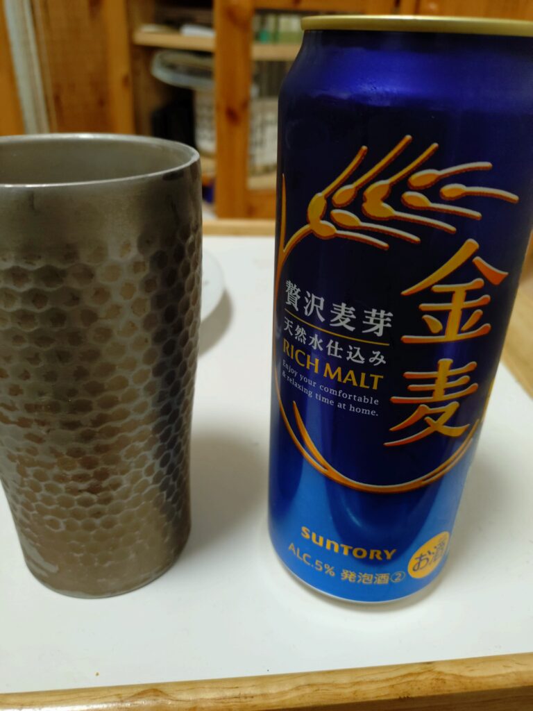 本日、口火を切るのはこいつだ。そう「帰れば金麦」。買い物に行ったので、実際に「帰れば…」になった。