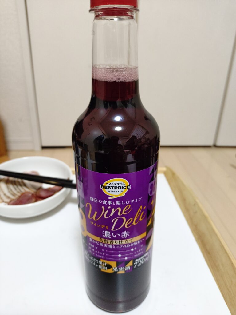 第十夜のお祝いに柄にもなく赤ワイン。しかも濃い赤だ。コイツもベストプライスブランド。